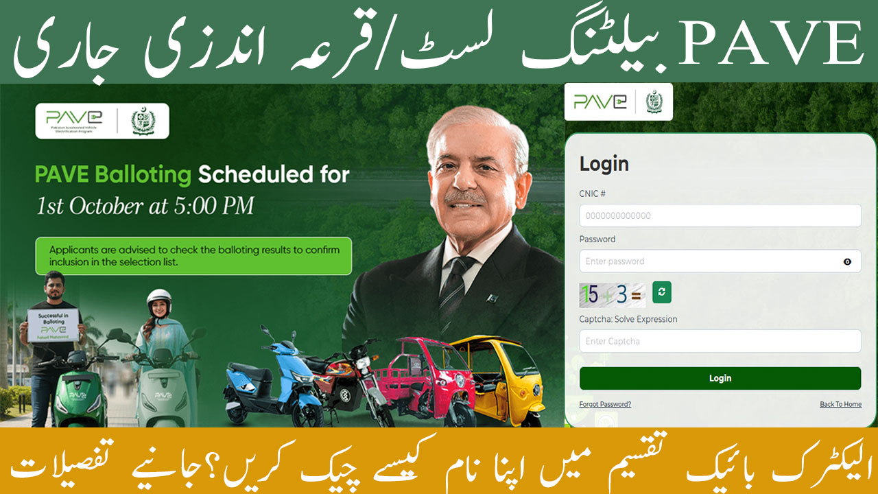 The Pakistan Accelerated Vehicle Electrification PAVE Scheme 2025 Balloting Result has released on pave.gov.pk. Check the Winner List PAVE Scheme, students, women, delivery riders, and workers finally have ...